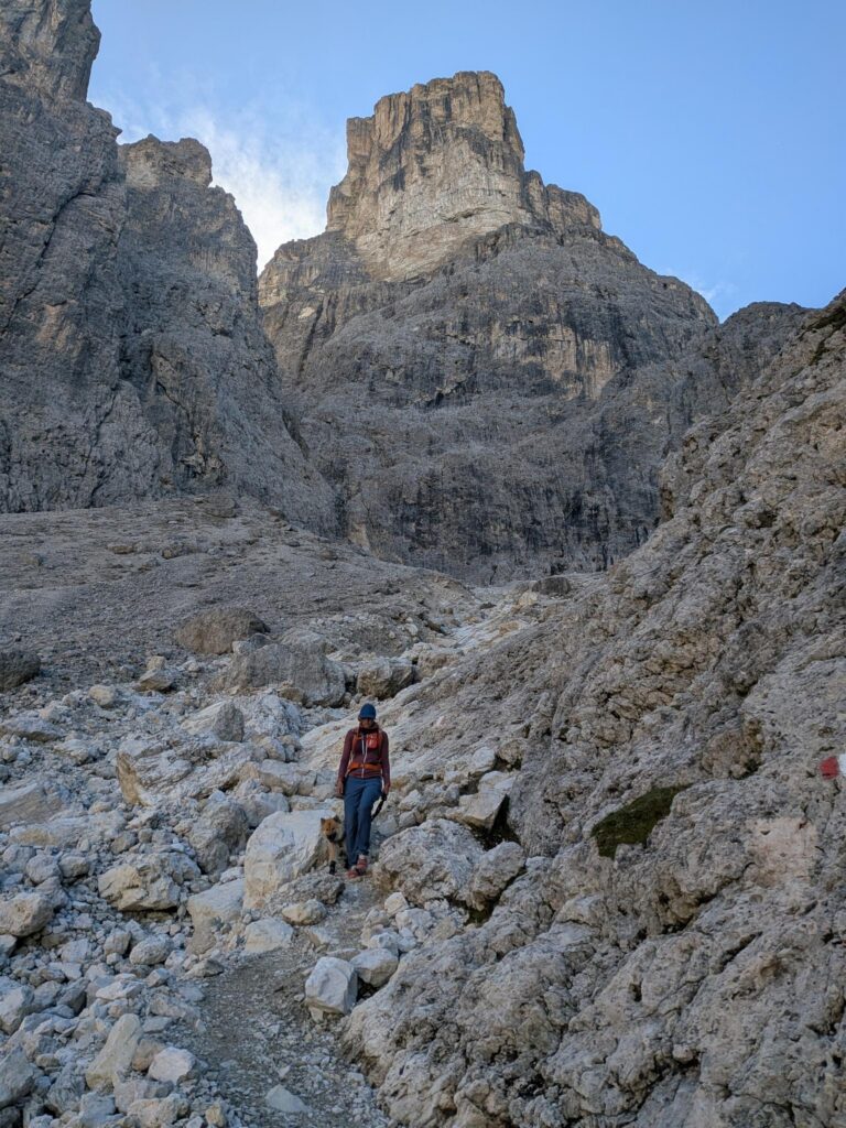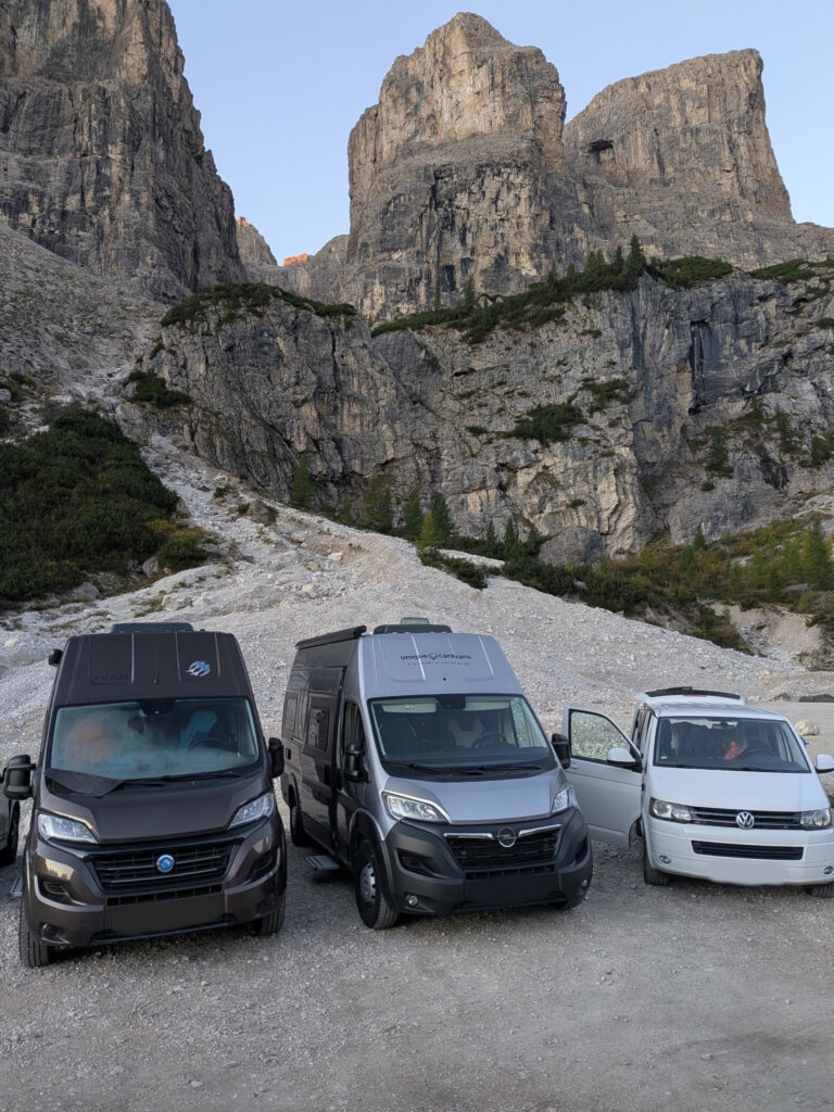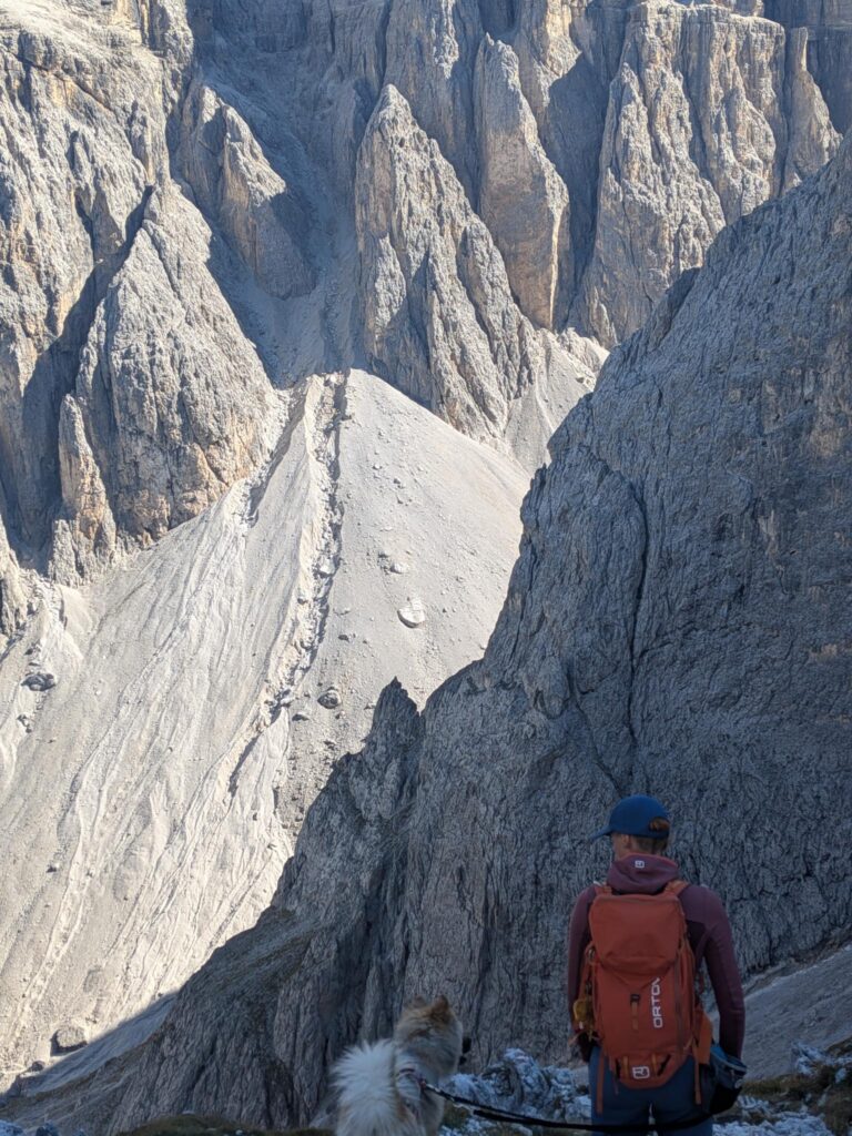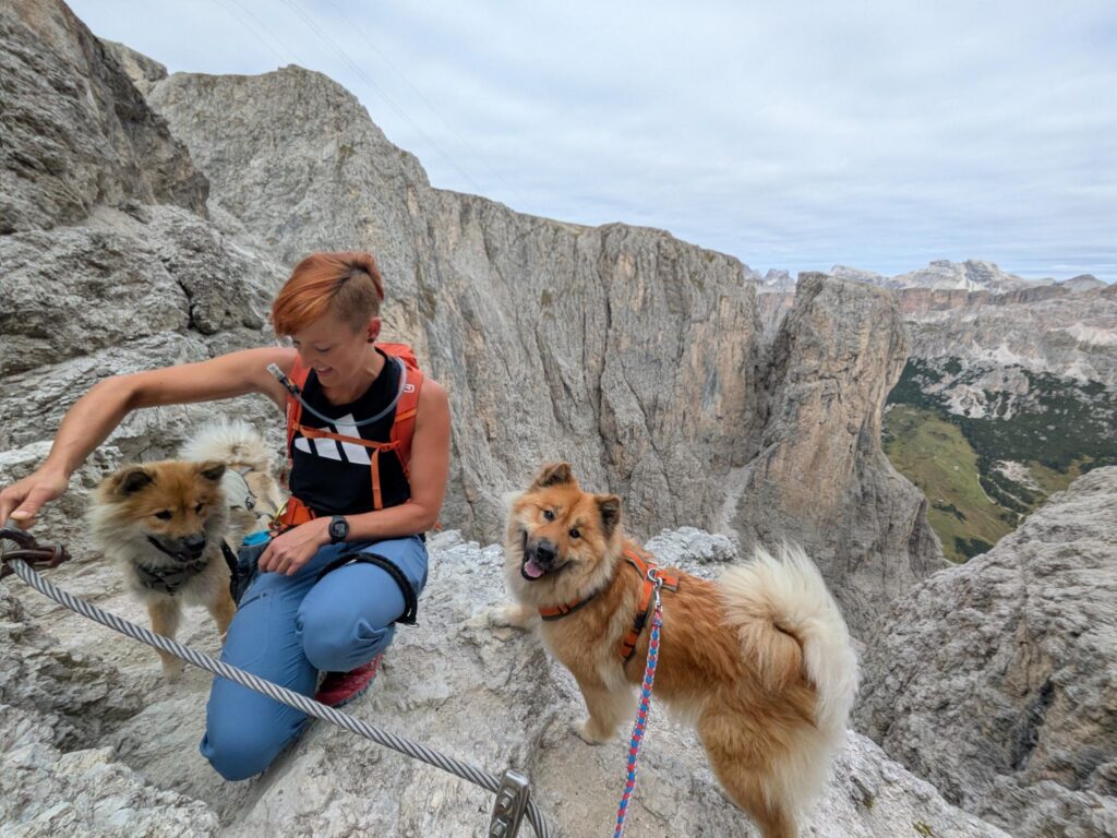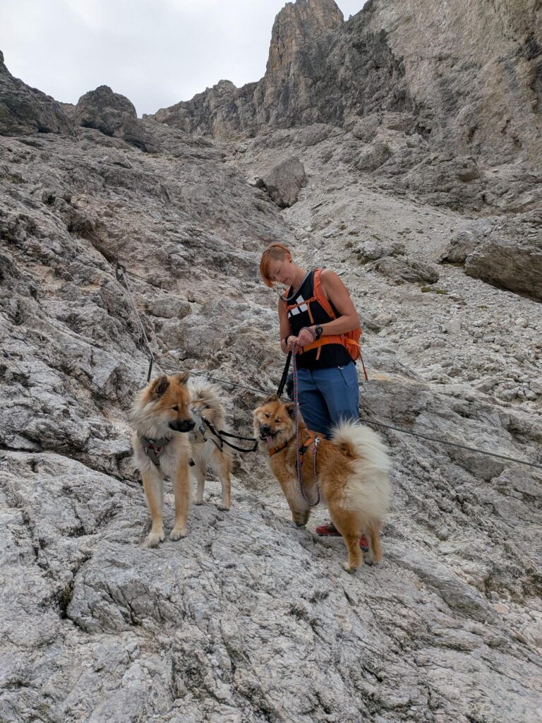 Trotzdem stiefelten wir bester Laune in Regenjacken gehüllt (ja, auch Happy und Cima) über die Hochgangscharte (2455 m) zu den Spronser Seen, zur Oberkaser Alm, über die Taufenscharte (wo ein kleines Arbeitsmeeting in feinstem Regen abgehalten wurde) zurück zur Leiter Alm. Nach einem schnellen Kaffee (es fror uns dezent) schwebten wir wieder mit dem Korblift hinab und beendeten unsere Tour mit der Eröffnung eines Feuchtbiotops (feuchte Kleidung im beheizten Wohnmobil). Zu gemütlich will man es ja während der Reise auch nicht haben.